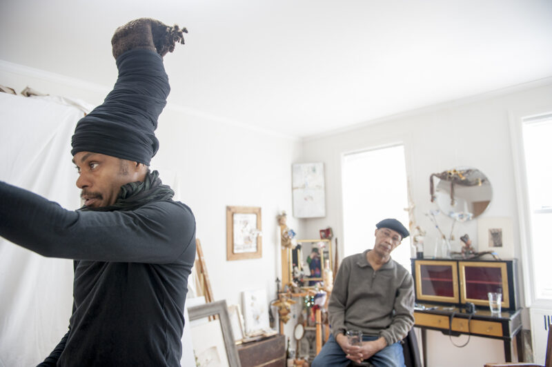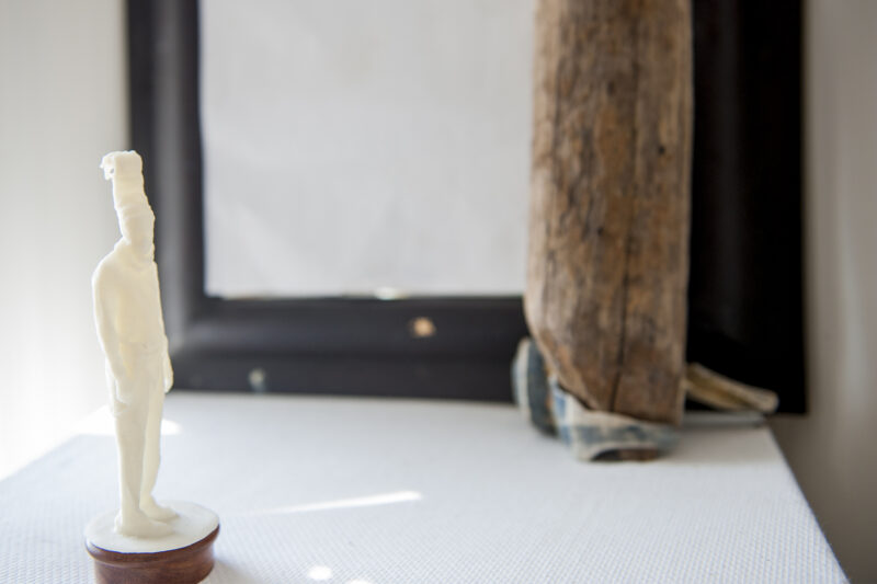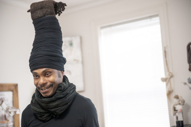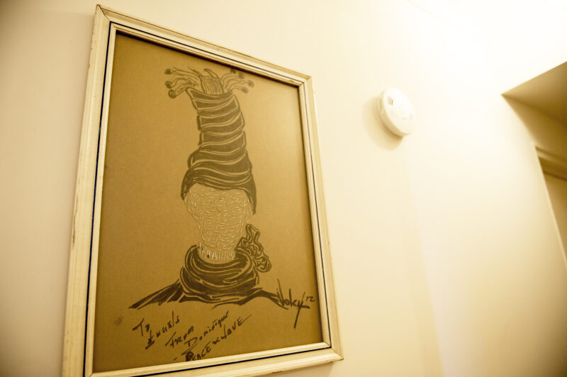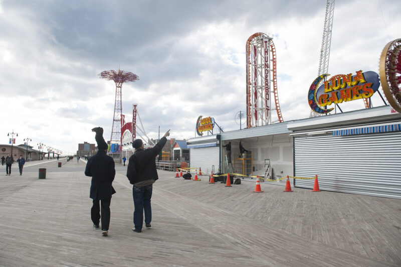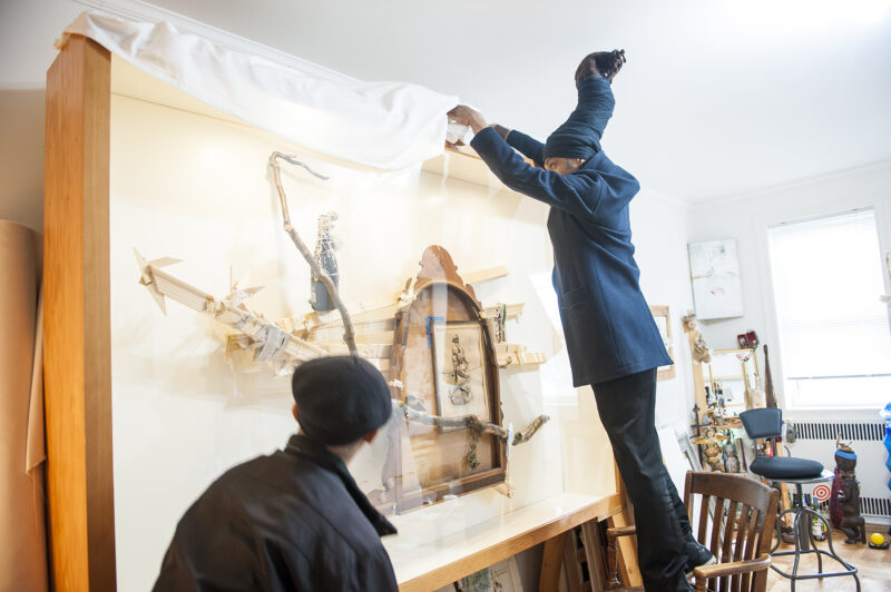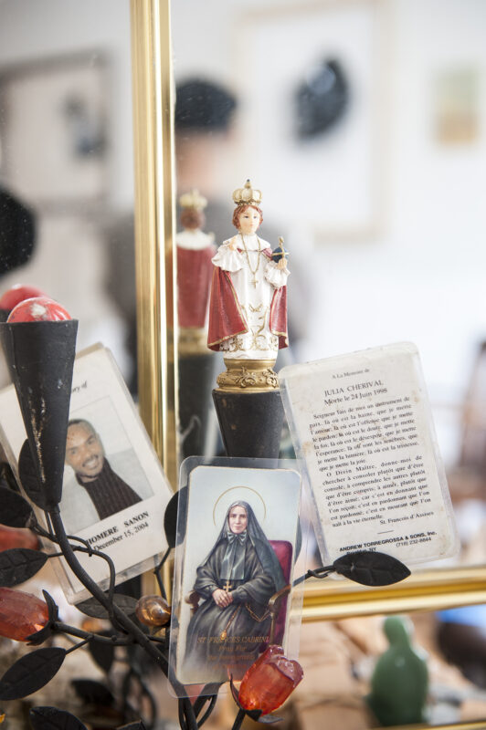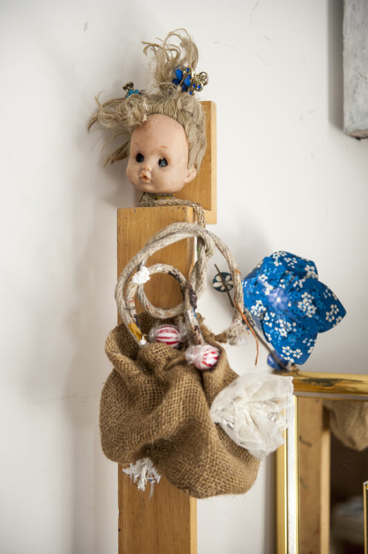 I travelled to Brooklyn to meet Engels the Artist. His studio is up a few flights of stairs in a block of apartments; the music of Edith Piaf plays as you enter the space. Fellow Haitian artist Jean Dominique Volcy was visiting that day and they chatted about art as I photographed the studio. Engels’ art uses many found objects: old wood, frayed rope, doll heads, glass, and perhaps anything that comes his way. The portrait of Engels was taken at nearby Coney Island.